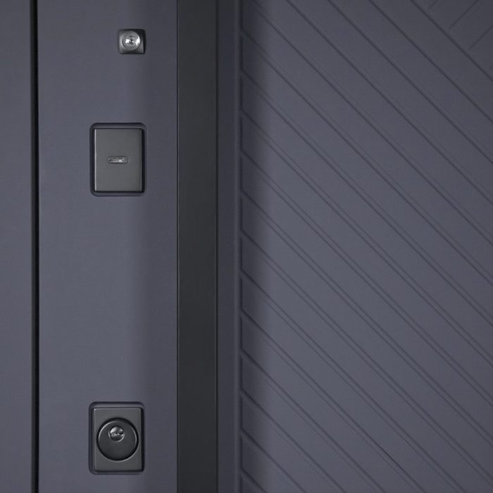 Фурнитура: Снаружи: ручка–скоба Art 50*25 Inox Basic Mechanical (цвет ral 9005). Внутри: ручка RedLine, ночная задвижка, глазок на квадратной розетке (цвет «черный»). Смотрите также: ДВЕРНЫЕ ГАДЖЕТЫ