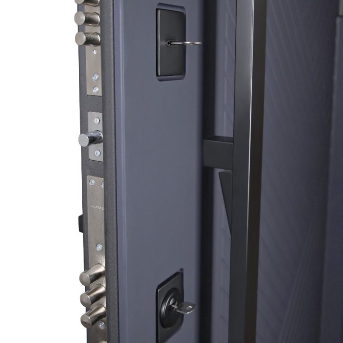Дополнительно: Евроцилиндр К-В перфокарта. Броненакладка врезная. Штырь противосъемный (3 шт.). Порог из нержавеющей стали (цвет «хром»).
