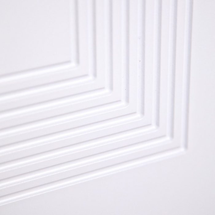 Внутренняя отделка: Экошпонированная панель МДФ 16 мм (цвет «Velluto Bianco AG 700»). Линейная фрезеровка.