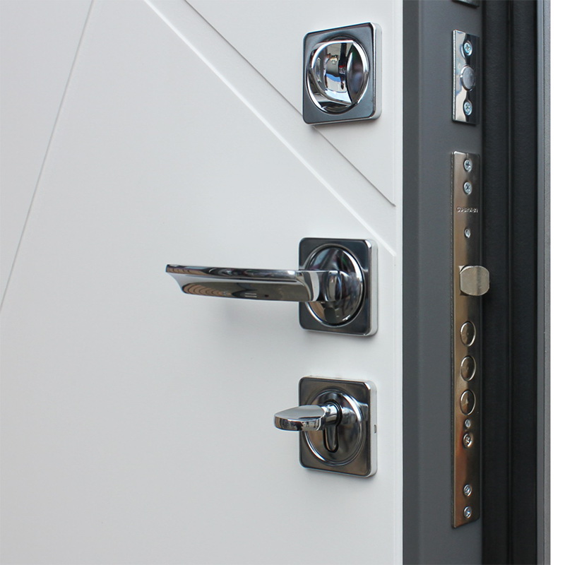 Фурнитура: Ручка, ночная задвижка, глазок на квадратной розетке. Цвет фурнитуры «хром». Смотрите также: ДВЕРНЫЕ ГАДЖЕТЫ