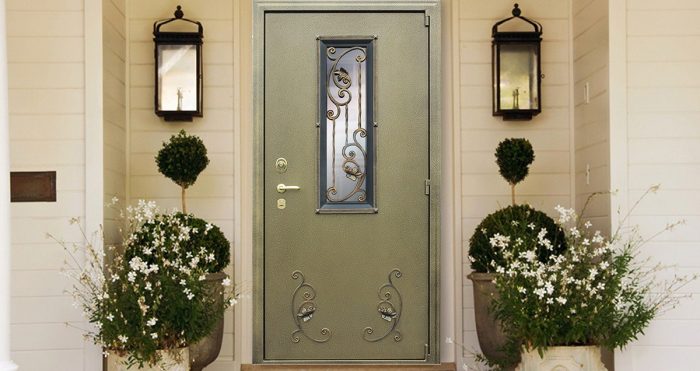 «С окном и ковкой» – стальная дверь в которой, наряду с отличными характеристиками безопасности, объединены два важных преимущества: функциональное окно и изящество композиции из кованых элементов, придающих модели особый шик и элегантность..
