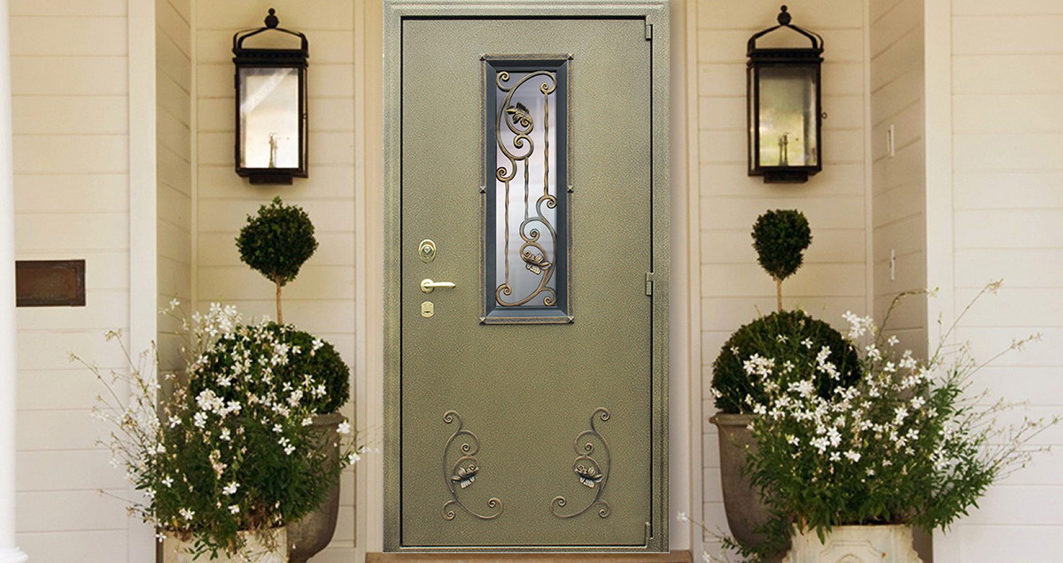 Стальная дверь «С окном и ковкой». Заказная модель.
