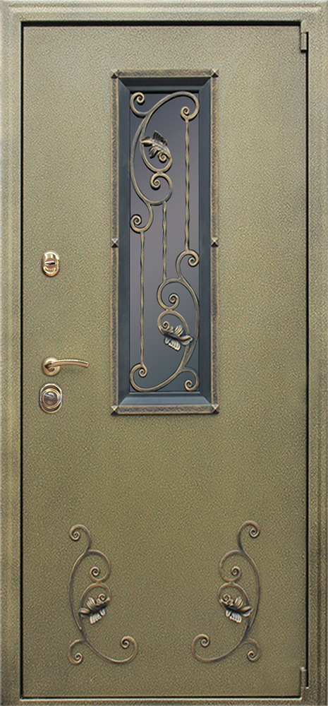 Главная Двери на заказ Стальная дверь «С окном и ковкой». Заказная модель.