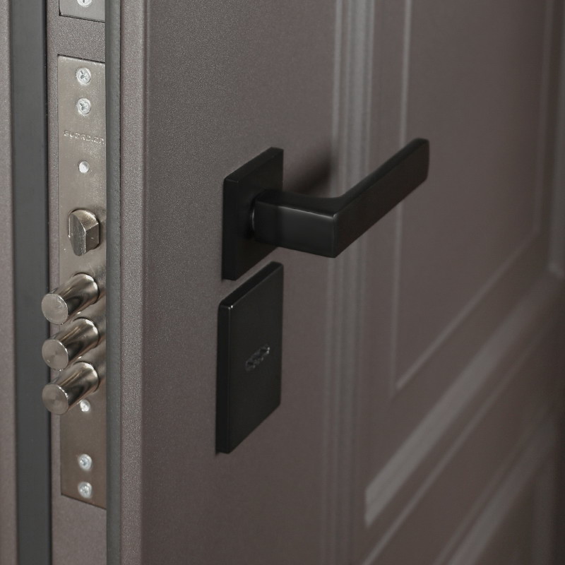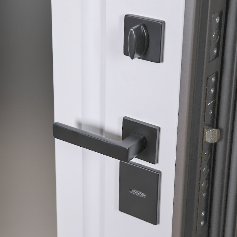 Фурнитура: Ручка, ночная задвижка на квадратной розетке (цвет «черный»). Смотрите также: ДВЕРНЫЕ ГАДЖЕТЫ