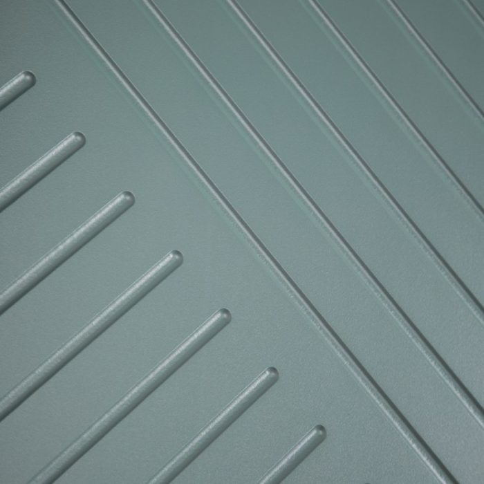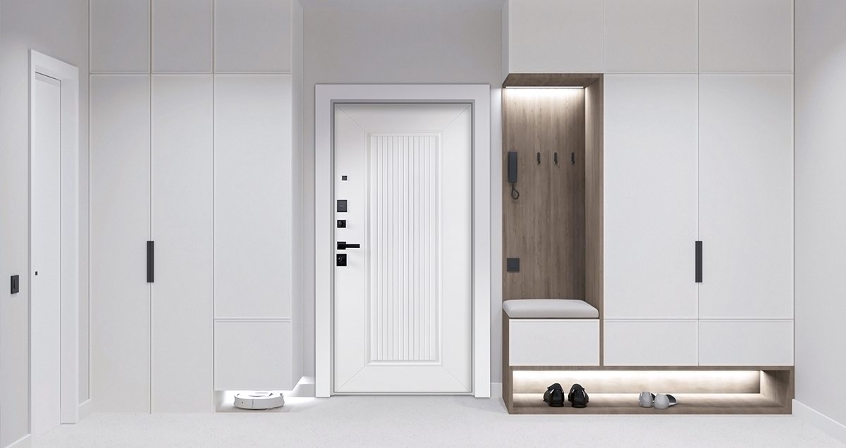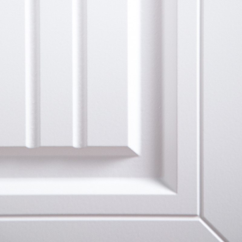 Внутренняя отделка: Экошпонированная панель МДФ 16 мм (цвет «белый матовый»). Линейная фрезеровка.