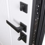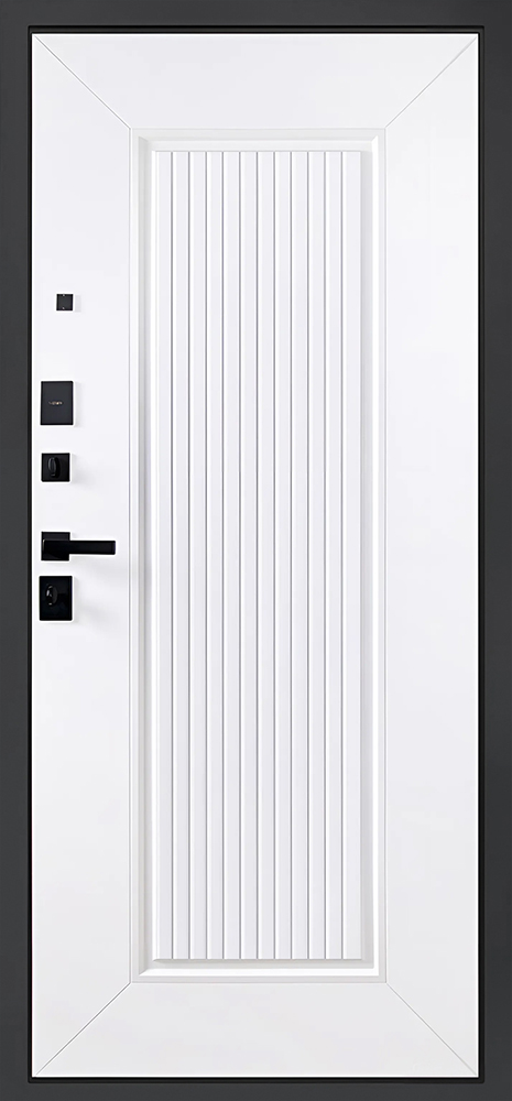 Фурнитура: Снаружи: ручка–скоба Art 50*25 Inox Basic Mechanical (цвет ral 9005). Внутри: ручка RedLine, ночная задвижка, глазок на квадратной розетке (цвет «черный»). Смотрите также: ДВЕРНЫЕ ГАДЖЕТЫ