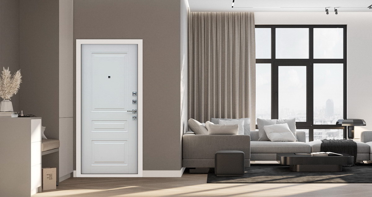 Внутренняя отделка: Экошпонированная с МДФ 10 мм. Объемная фрезеровка. Цвет внутренней панели: «Белый матовый».