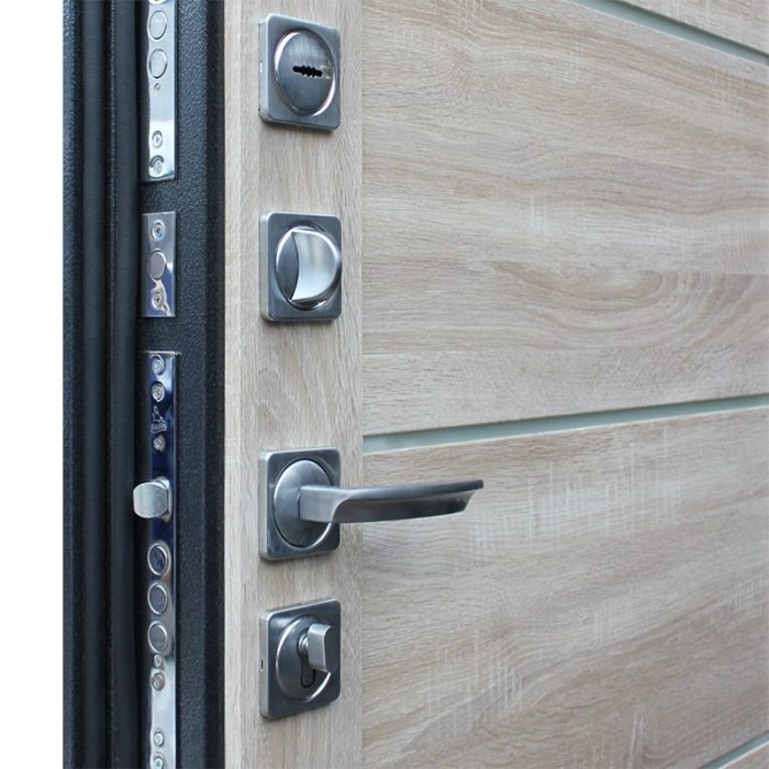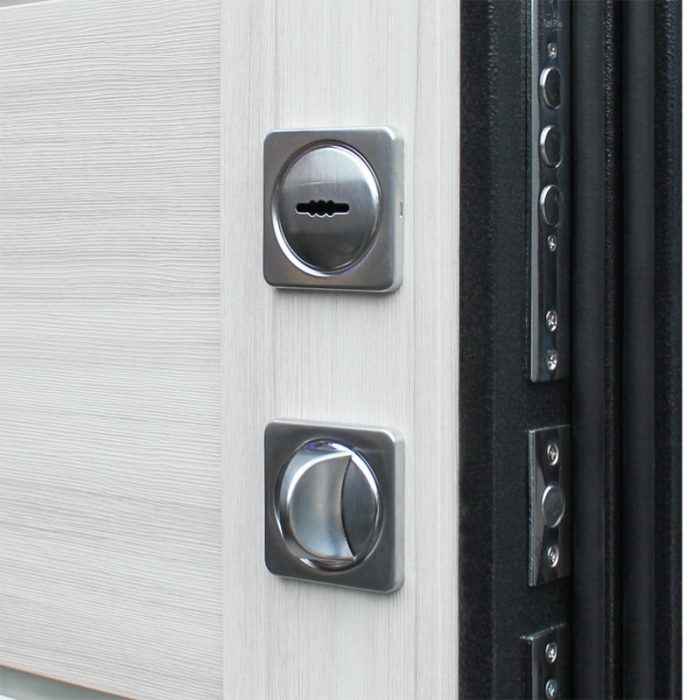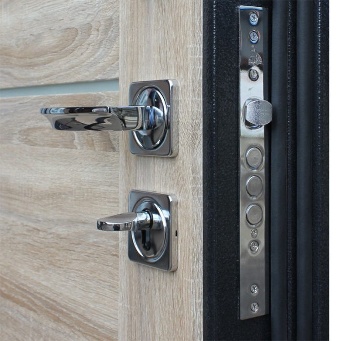 Фурнитура: Ручка, ночная задвижка, глазок на квадратной розетке. Цвет «хром».Смотрите также: ДВЕРНЫЕ ГАДЖЕТЫ