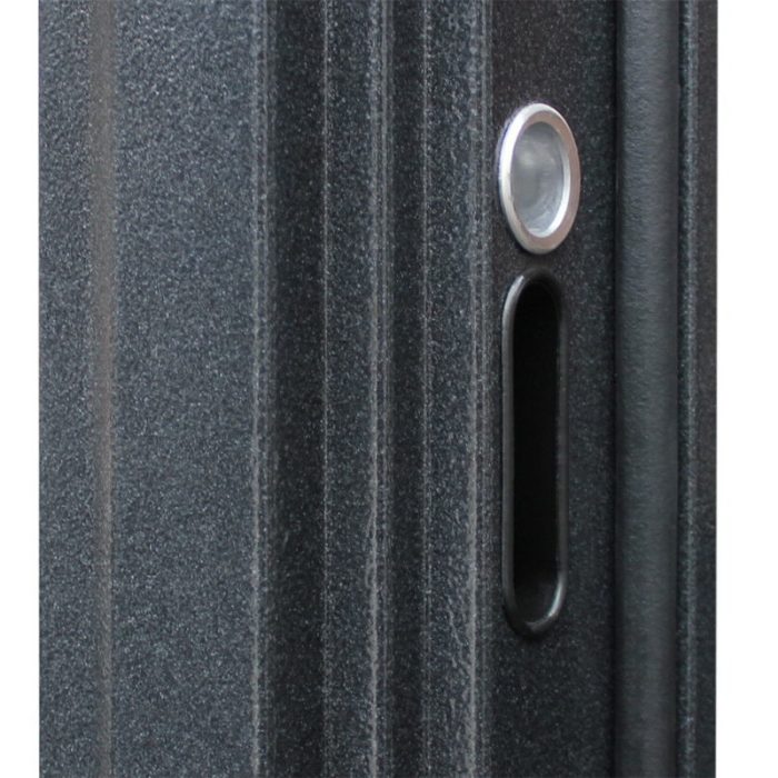 Стальная дверь «Вектор с зеркалом» - выполнена в строгом универсальном дизайне, который одинаково хорошо будет смотреться в интерьере дома и современного офиса. Зеркало, вмонтированное во внутреннюю панель, позволит сократить расходы покупателей, на дополнительное приобретение зеркала.