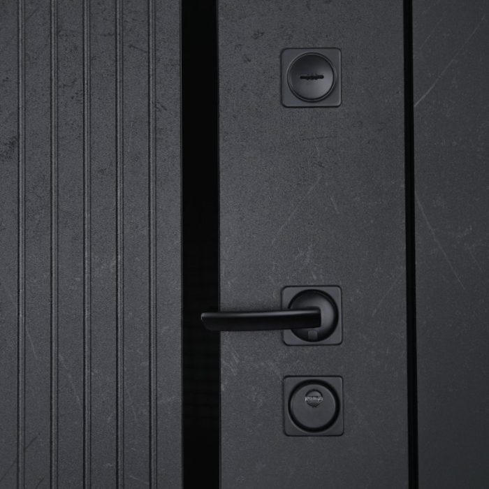 Фурнитура: Ручка, ночная задвижка, глазок на квадратной розетке. Цвет фурнитуры «черный». Смотрите также: ДВЕРНЫЕ ГАДЖЕТЫ