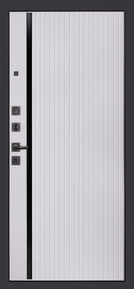 Внутренняя отделка: Экошпонированная панель МДФ 10 мм. Вертикальная вставка из черного глянцевого лакобеля. Цвет «силк сноу».