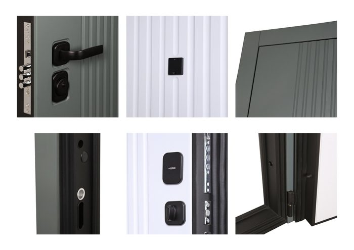 Фурнитура: Ручка, ночная задвижка, глазок на квадратной розетке (цвет «черный»). Смотрите также: ДВЕРНЫЕ ГАДЖЕТЫ