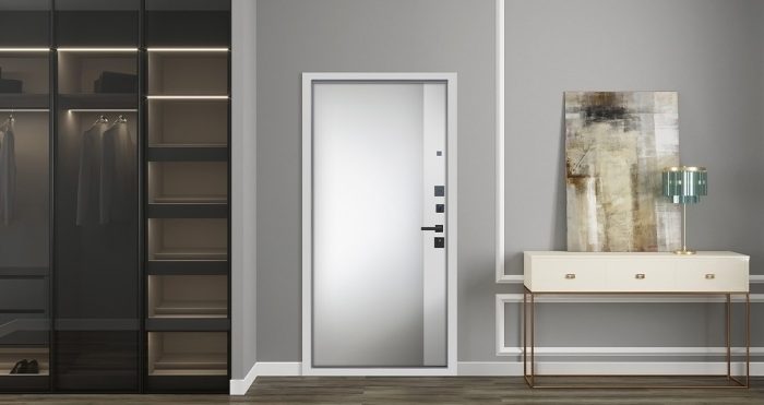 Дополнительно: Евроцилиндр К-В (перфокарта) Броненакладка врезная. Штырь противосъемный (3 шт). Порог из нержавеющей стали (цвет «хром»).