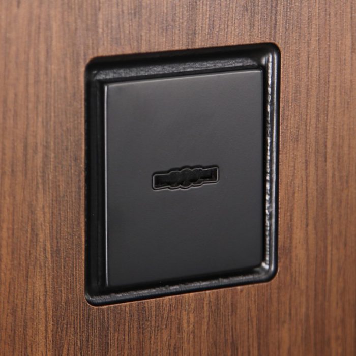 Фурнитура: Ручка, ночная задвижка, глазок на квадратной розетке. Цвет «Черный». Смотрите также: ДВЕРНЫЕ ГАДЖЕТЫ