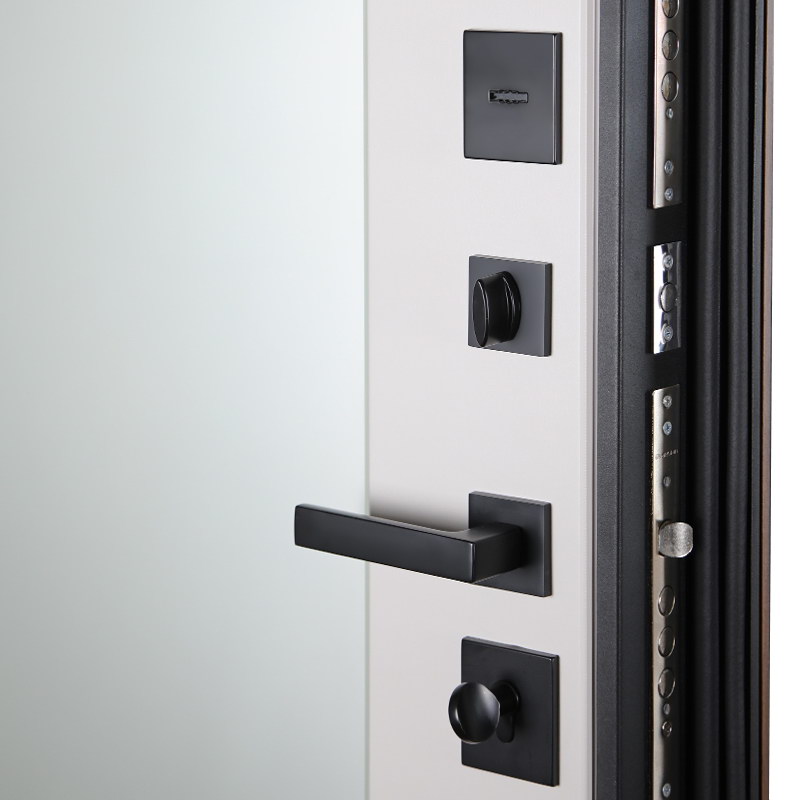Фурнитура: Ручка, ночная задвижка, глазок на квадратной розетке. Цвет «Черный». Смотрите также: ДВЕРНЫЕ ГАДЖЕТЫ