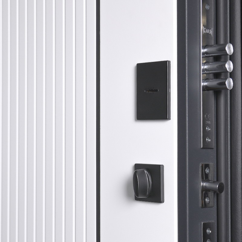 Фурнитура: Ручка, ночная задвижка, глазок на квадратной розетке (цвет «черный матовый»). Смотрите также: ДВЕРНЫЕ ГАДЖЕТЫ