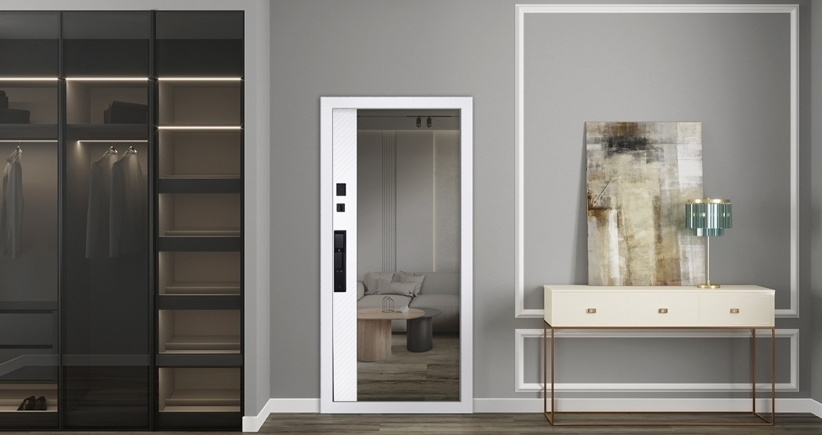 Главная Двери на заказ Стальная дверь «Форт» с зеркалом (биометрический замок).