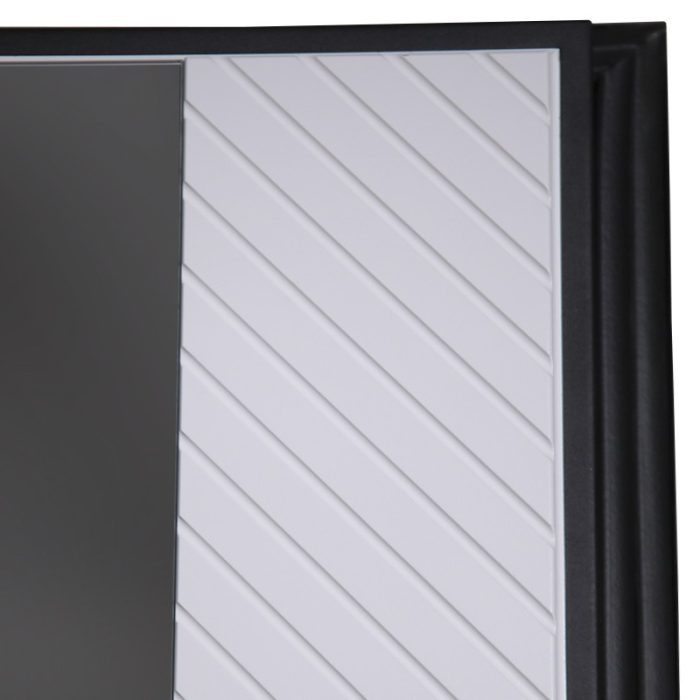 Внутренняя отделка: Экошпонированная панель МДФ 16 мм. Цвет «белый матовый». Линейная фрезеровка в современном стиле. Большое зеркало.