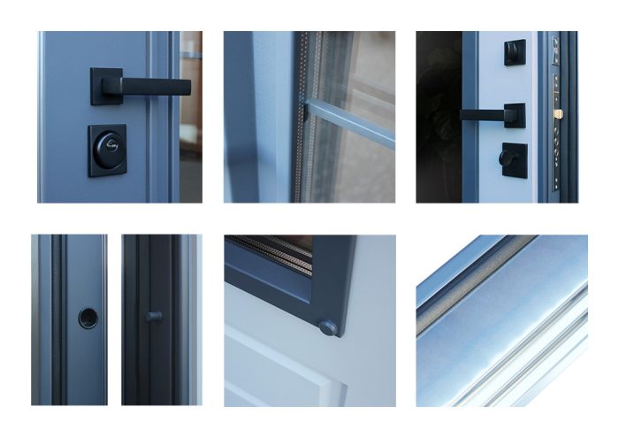 Дополнительно: Евроцилиндр К-В перфокарта. Броненакладка врезная. Штырь противосъемный (3 шт.). Порог из нержавеющей стали (цвет «хром»).