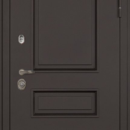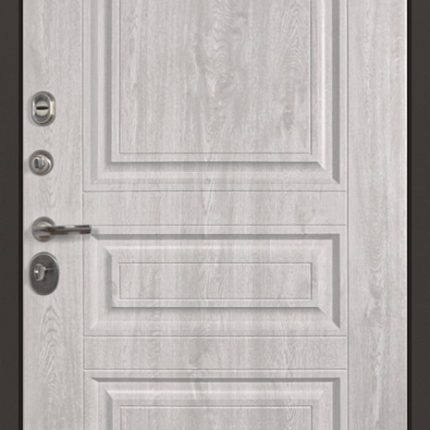 Дополнительно: Евроцилиндр К-В перфокарта. Броненакладка врезная. Штырь противосъемный (3 шт.). Порог из нержавеющей стали (цвет «хром»).