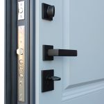 Фурнитура: Ручка, ночная задвижка на квадратной розетке. Цвет «черный». Смотрите также: ДВЕРНЫЕ ГАДЖЕТЫ