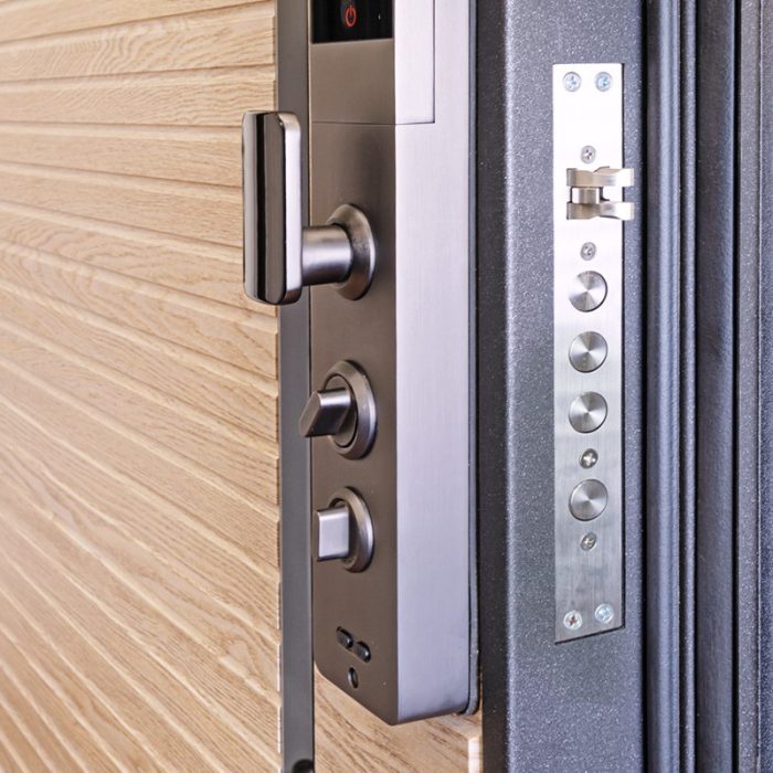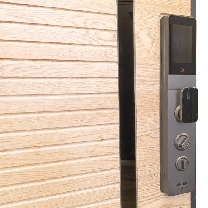 Фурнитура: Дверная ручка, ночная задвижка и глазок интегрированы в функции замка. Смотрите также: ДВЕРНЫЕ ГАДЖЕТЫ