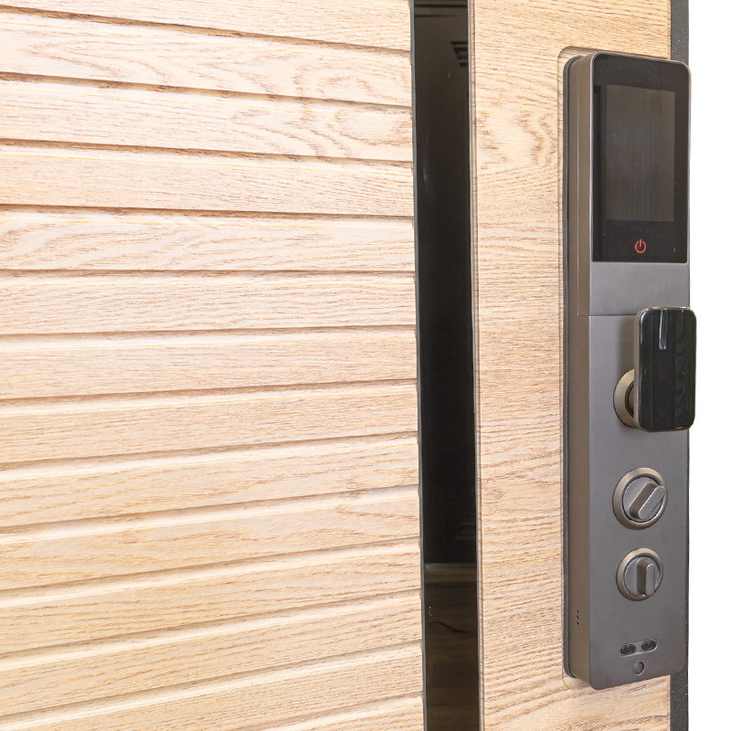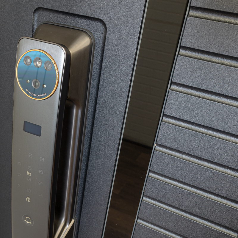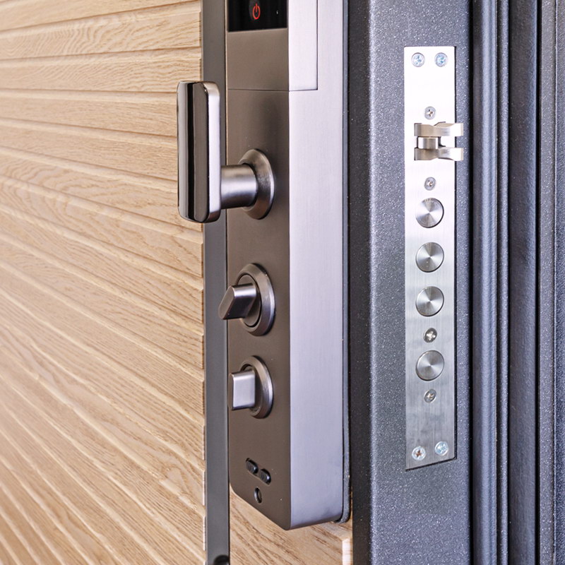 Представляем новинку от «АСД» ― модель «Antro», сочетающую новые дизайнерские решения и наш многолетний опыт производства стальных дверей. Наружный лист (1,5 мм) отделан панелью МДФ в строгом цвете «Шагрень черная» со вставкой черная локабель , внутреннее полотно отделано экошпоном в элегантном цвете «Астана табак горизонт». Безопасность обеспечивает электронный дверной замок серии Smart lock DZ016Pro.Благодаря качественному утеплению «Antro» не только защитит ваш дом от недоброжелательных гостей, но и сделает его более комфортным.
