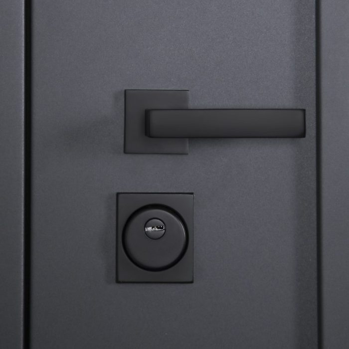 Фурнитура: Ручка, ночная задвижка на квадратной розетке (цвет «черный»). Смотрите также: ДВЕРНЫЕ ГАДЖЕТЫ