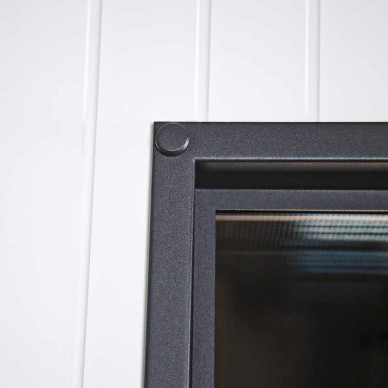 Внутренняя отделка: Панель МДФ 16 мм (цвет «белый матовый»). Объемная фрезеровка. Прижимная рамка 30 мм. (покраска в цвет двери). Стеклопакет тонированный.
