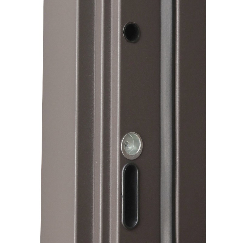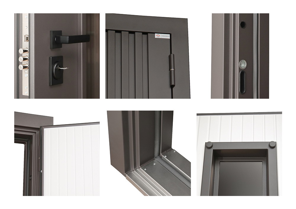 Дополнительно: Евроцилиндр К-В перфокарта. Броненакладка врезная. Штырь противосъемный (3 шт). Порог из нержавеющей стали (цвет «хром»).
