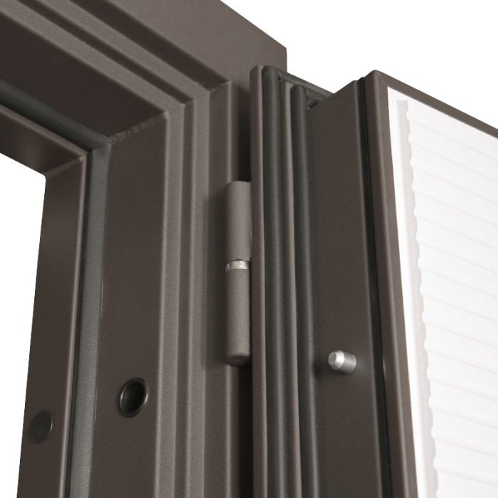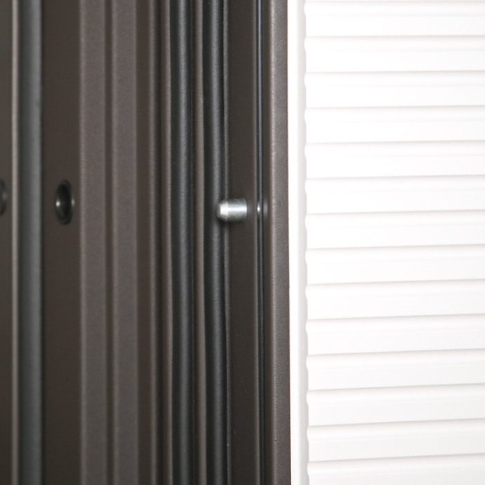 Дополнительно: Евроцилиндр К-В перфокарта. Броненакладка врезная. Штырь противосъемный (3 шт). Порог из нержавеющей стали (цвет «хром»).