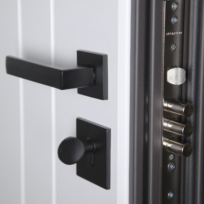 Фурнитура: Ручка, ночная задвижка на квадратной розетке (цвет «черный»). Смотрите также: ДВЕРНЫЕ ГАДЖЕТЫ