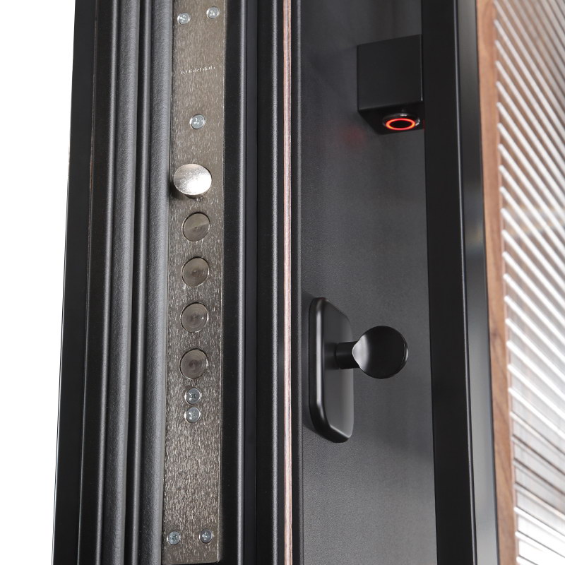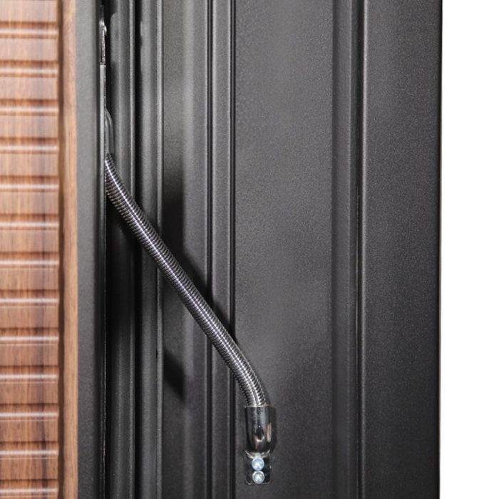 Дополнительно: Евроцилиндр К-В (перфокарта). Броненакладка врезная. Штырь противосъемный (3 шт). Порог из нержавеющей стали (цвет «хром»). Скрытый доводчик.