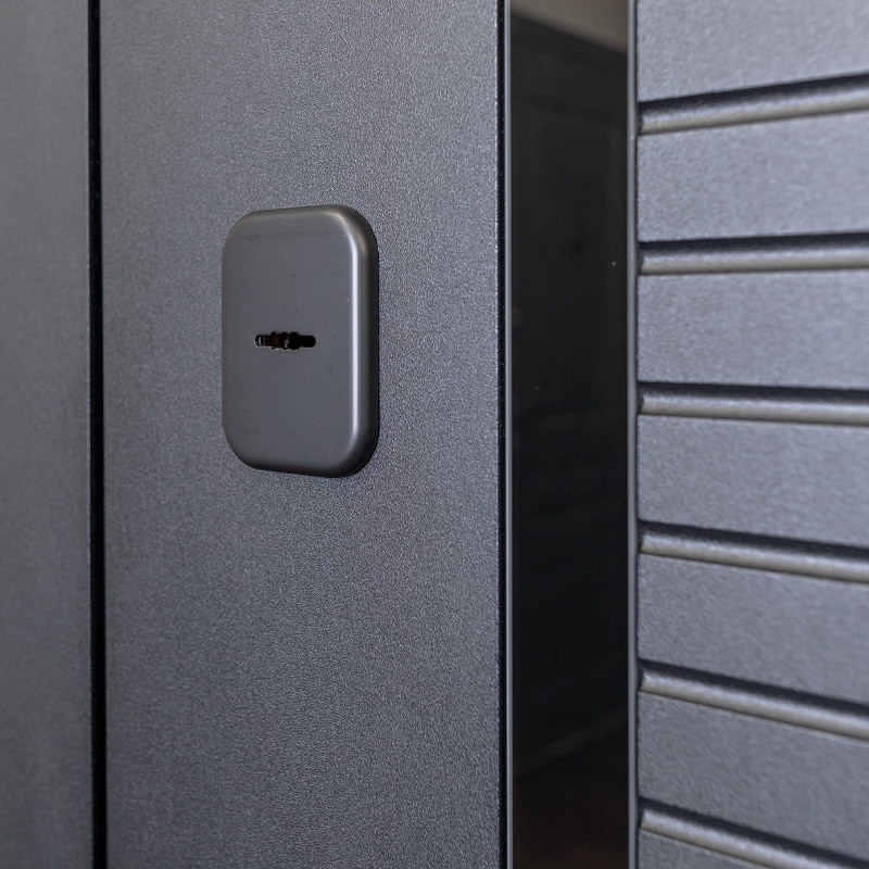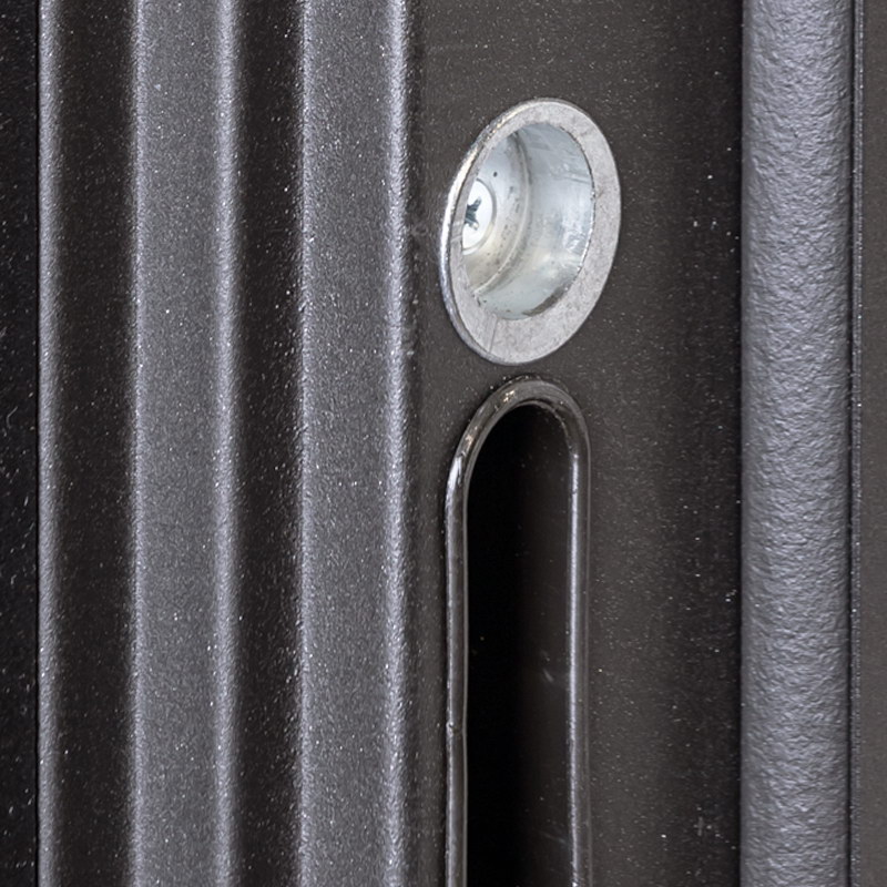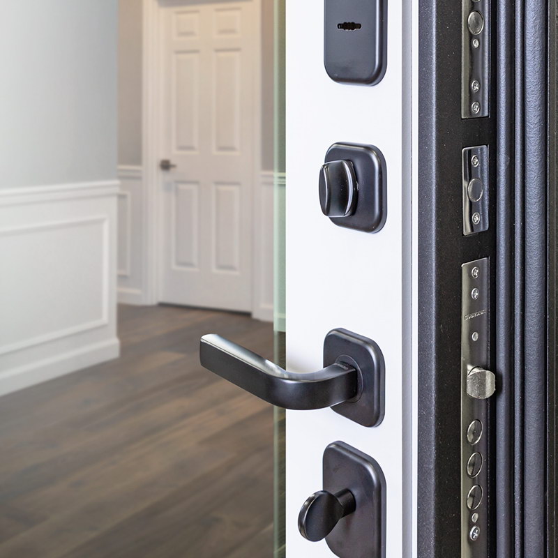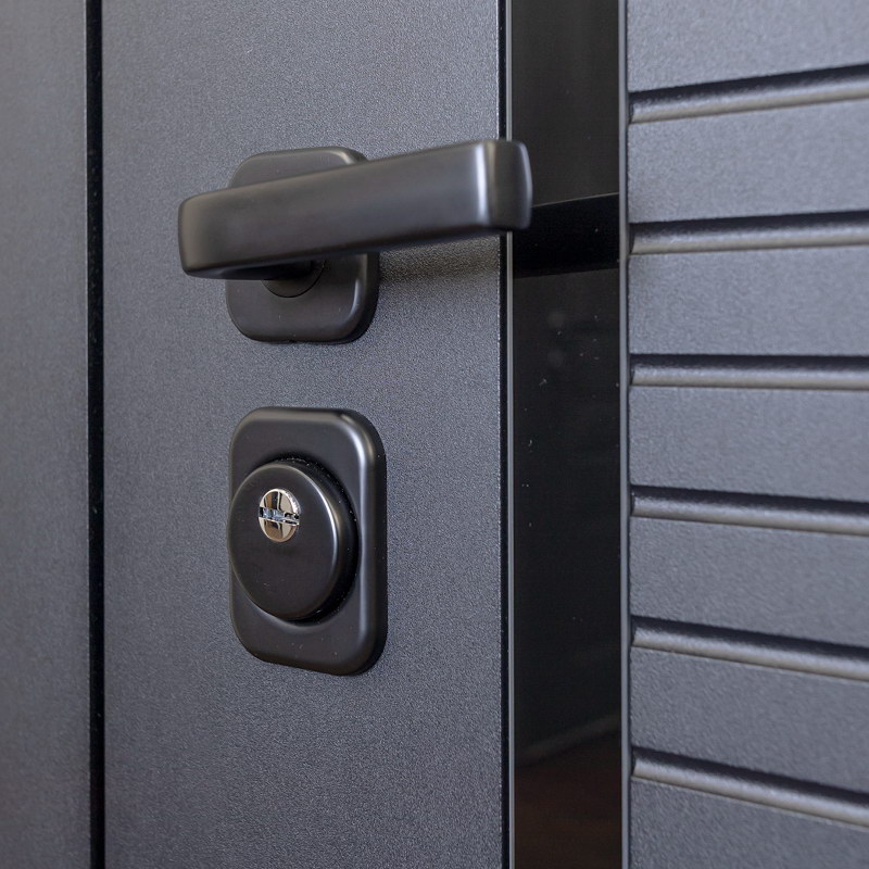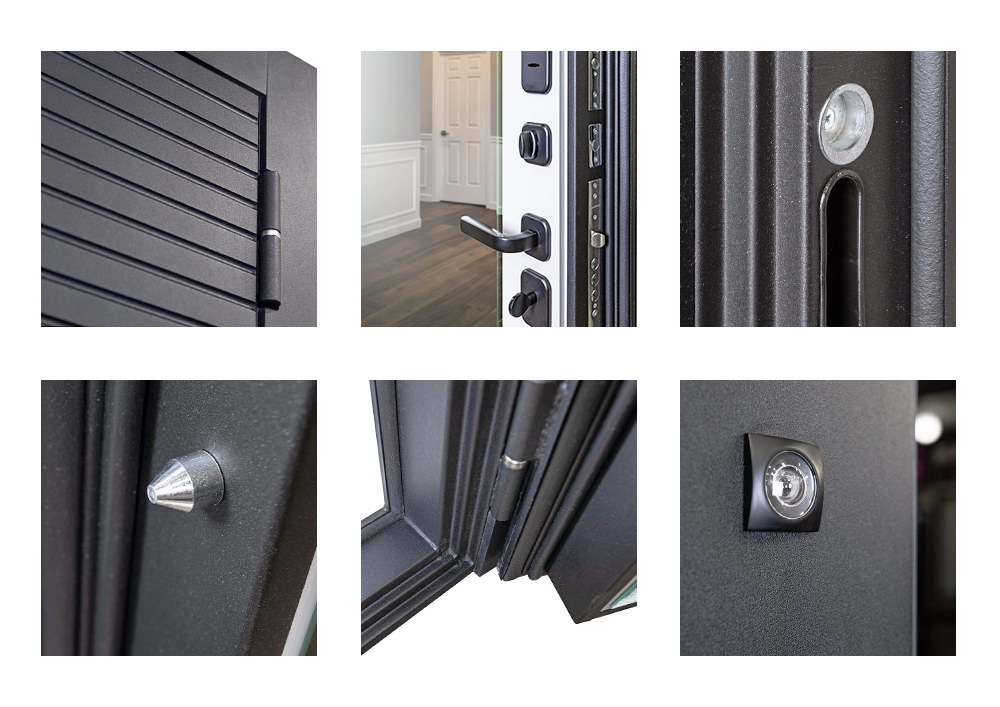 Фурнитура: Ручка, ночная задвижка, глазок на квадратной розетке. Цвет фурнитуры «черный». Смотрите также: ДВЕРНЫЕ ГАДЖЕТЫ