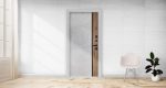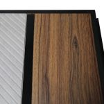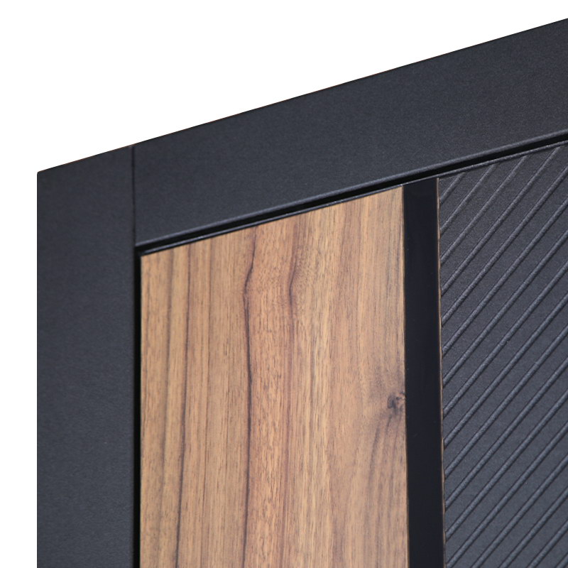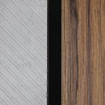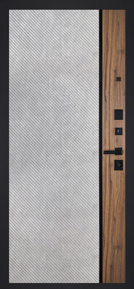 Внутренняя отделка: Экошпонированная панель МДФ 10мм. Цветовая комбинация: «бетон светлый» и «орех коньяк». Декоративная пластиковая вставка в черном цвете.