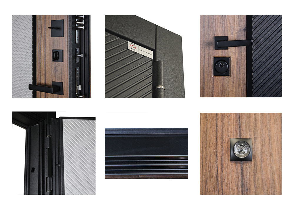 Фурнитура: Ручка , ночная задвижка, глазок на квадратной розетке. Цвет фурнитуры «черный». Смотрите также: ДВЕРНЫЕ ГАДЖЕТЫ