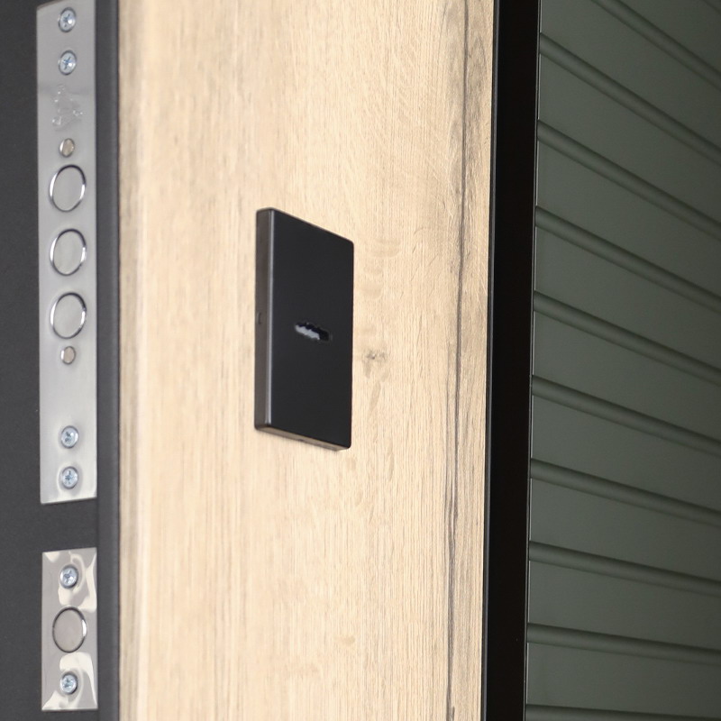 Фурнитура: Ручка, ночная задвижка, глазок на квадратной розетке (цвет «черный»). Смотрите также: ДВЕРНЫЕ ГАДЖЕТЫ