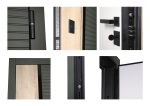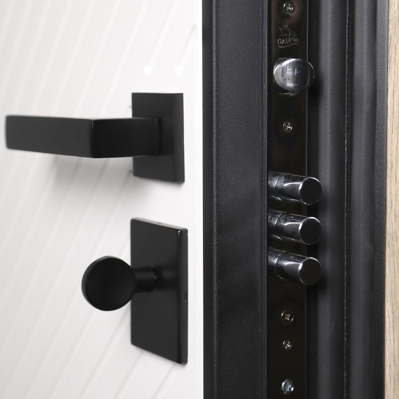 Фурнитура: Ручка, ночная задвижка, глазок на квадратной розетке (цвет «черный»). Смотрите также: ДВЕРНЫЕ ГАДЖЕТЫ