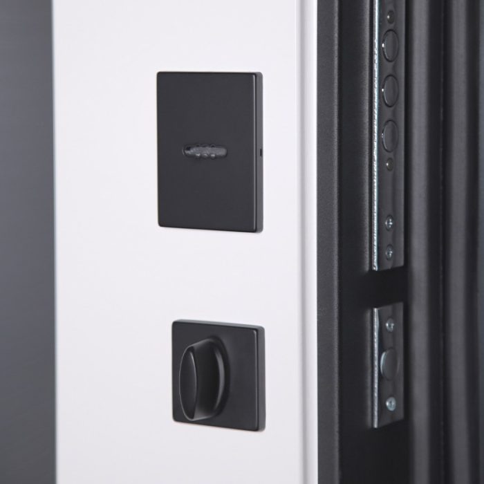 Фурнитура: Ручка, ночная задвижка, глазок на квадратной розетке. Цвет «черный». Смотрите также: ДВЕРНЫЕ ГАДЖЕТЫ