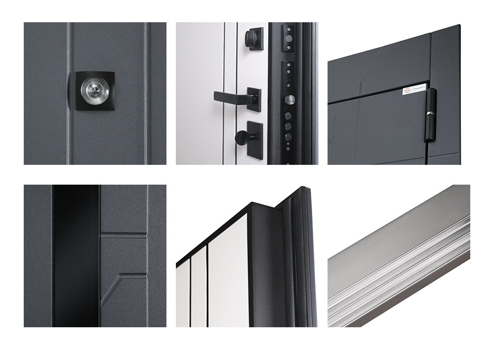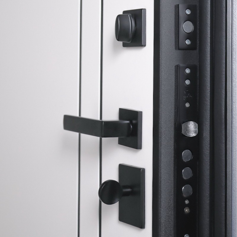 Защитные элементы: Ручка, ночная задвижка, глазок на квадратной розетке. Цвет «черный».