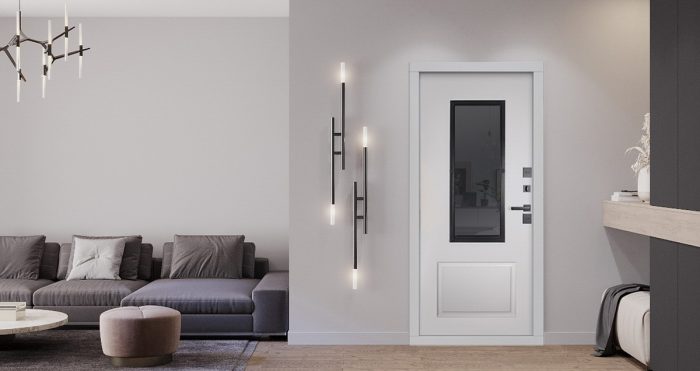 Внутренняя отделка: Экошпонированная панель МДФ 16 мм. Объемная фрезеровка. Цвет «белый матовый».