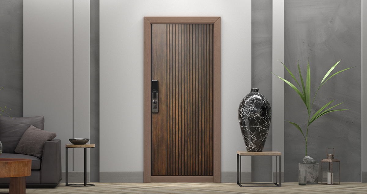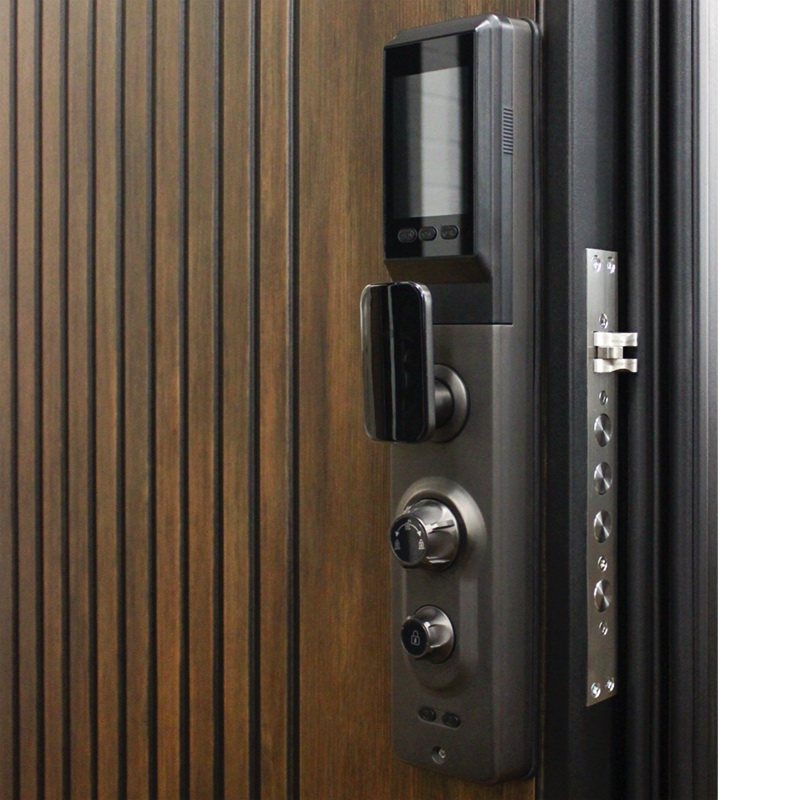 Фурнитура: Функции дверной ручки и глазка интегрировваны в дверной замок. Смотрите также: ДВЕРНЫЕ ГАДЖЕТЫ