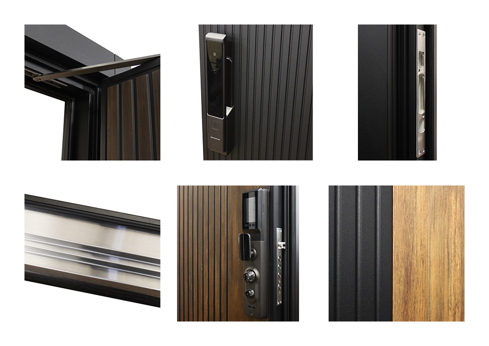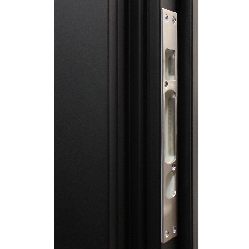 Дополнительно: Штырь противосъемный (3 шт). Порог из нержавеющей стали (цвет хром). Подсветка в дверной коробке. Скрытый доводчик.