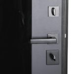 Фурнитура: Фурнитура на квадратной розетке: ручка, ночная задвижка, глазок. Цвет фурнитуры «черный». Смотрите также: ДВЕРНЫЕ ГАДЖЕТЫ