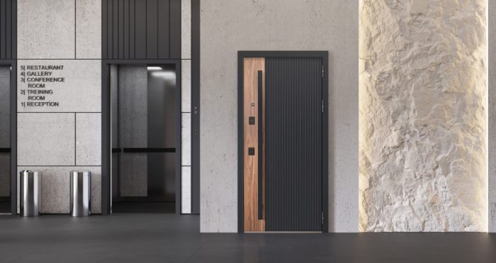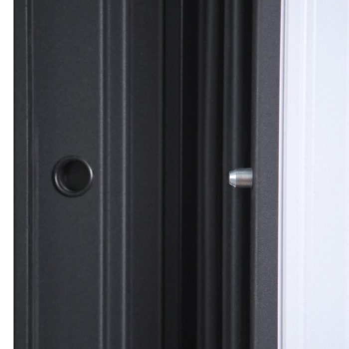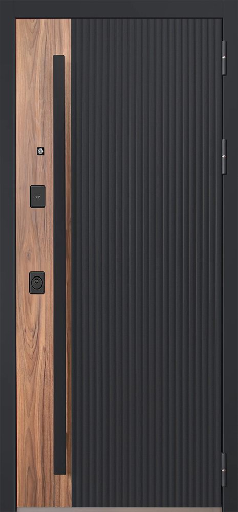 Фурнитура: Снаружи: ручка–скоба Art 50*25 Inox Basic Mechanical (цвет ral 9005). Внутри: ручка RedLine, ночная задвижка, глазок на квадратной розетке (цвет «черный»). Смотрите также: ДВЕРНЫЕ ГАДЖЕТЫ