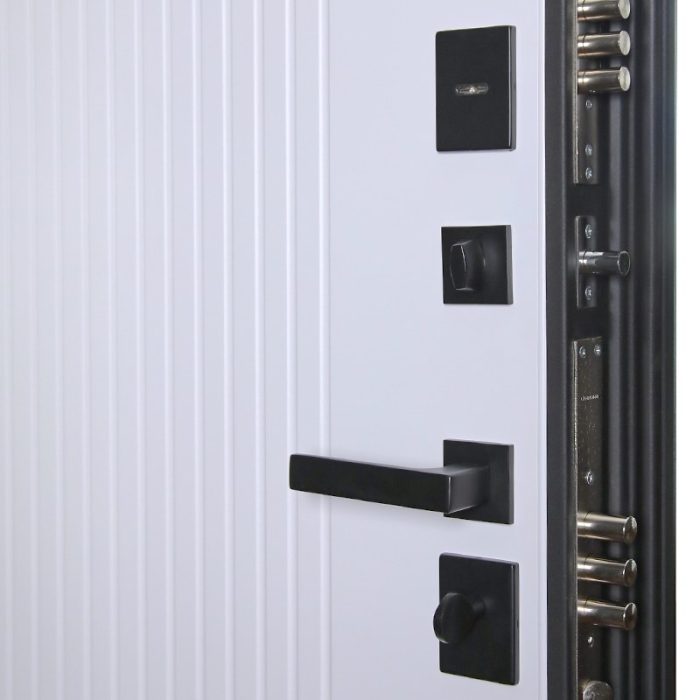 Дополнительно: Евроцилиндр К-В перфокарта. Броненакладка врезная. Штырь противосъемный (3 шт). Порог из нержавеющей стали (цвет «хром»).
