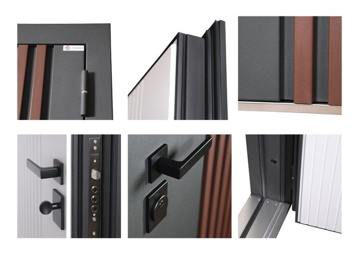 Покрытие: Два слоя покрытия: первый слой — цинкогрунт, второй слой — порошковое покрытие (дверь — «муар черный», рейки — «муар коричневый»).