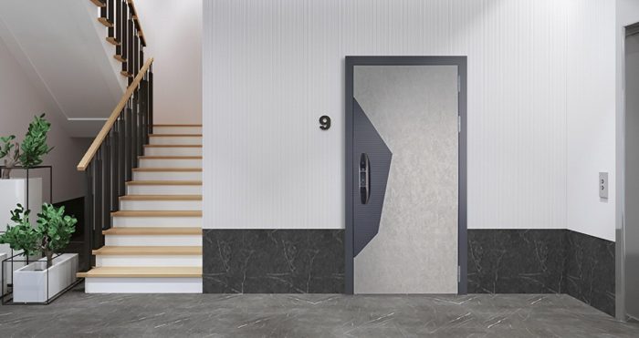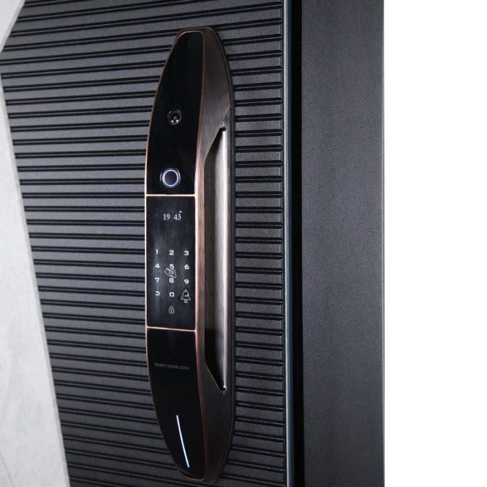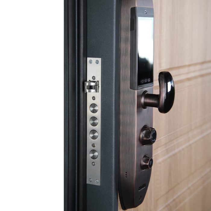 Фурнитура: Функции дверной ручки и глазка интегрировваны в дверной замок.