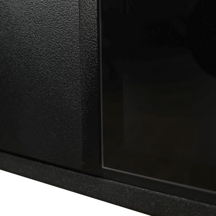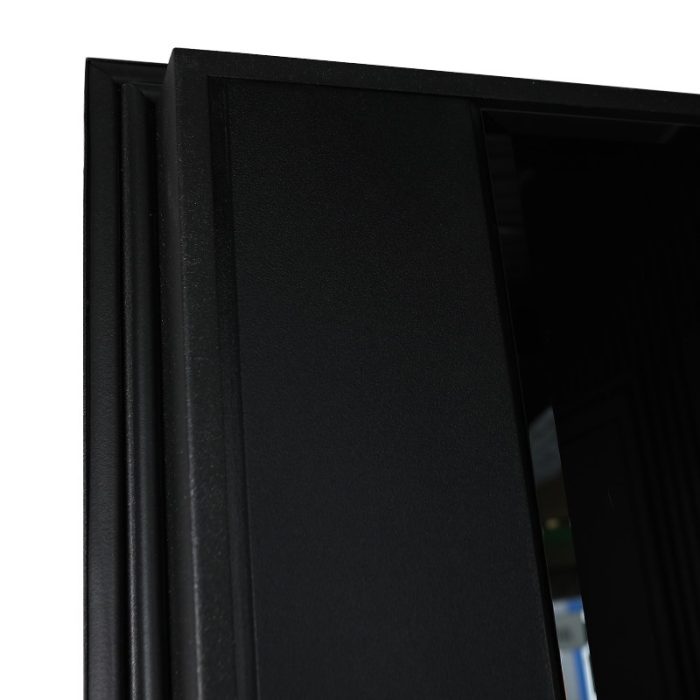Внутренняя отделка: Экошпонированная панель МДФ 16 мм. Цвет «черный кварц». Зеркальная вставка из черного лакобеля с фацетированием.