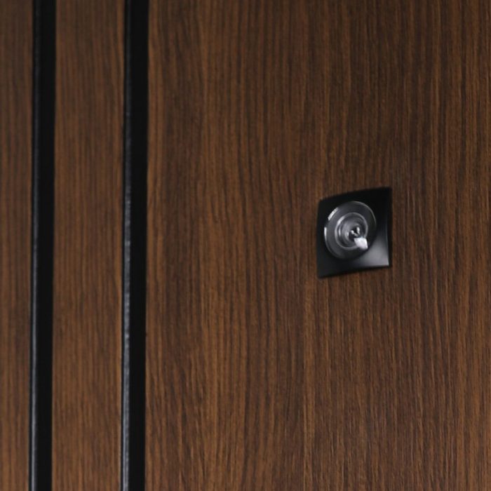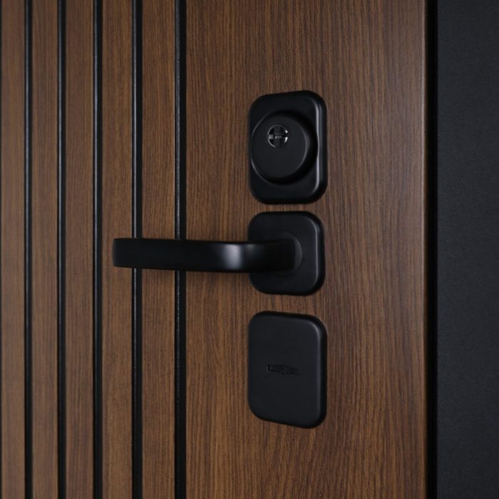 Фурнитура: Ручка , ночная задвижка, глазок на квадратной розетке. Цвет фурнитуры «черный». Смотрите также: ДВЕРНЫЕ ГАДЖЕТЫ
